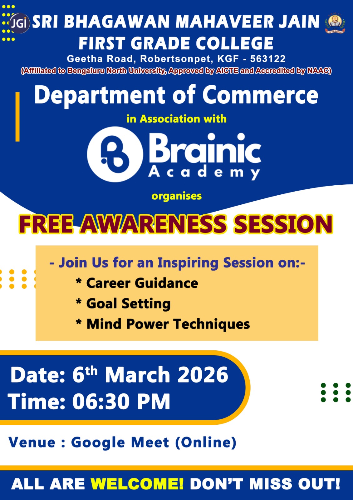 Department of Commerce in association with Brainic academy organised career awareness session for all B.com students.