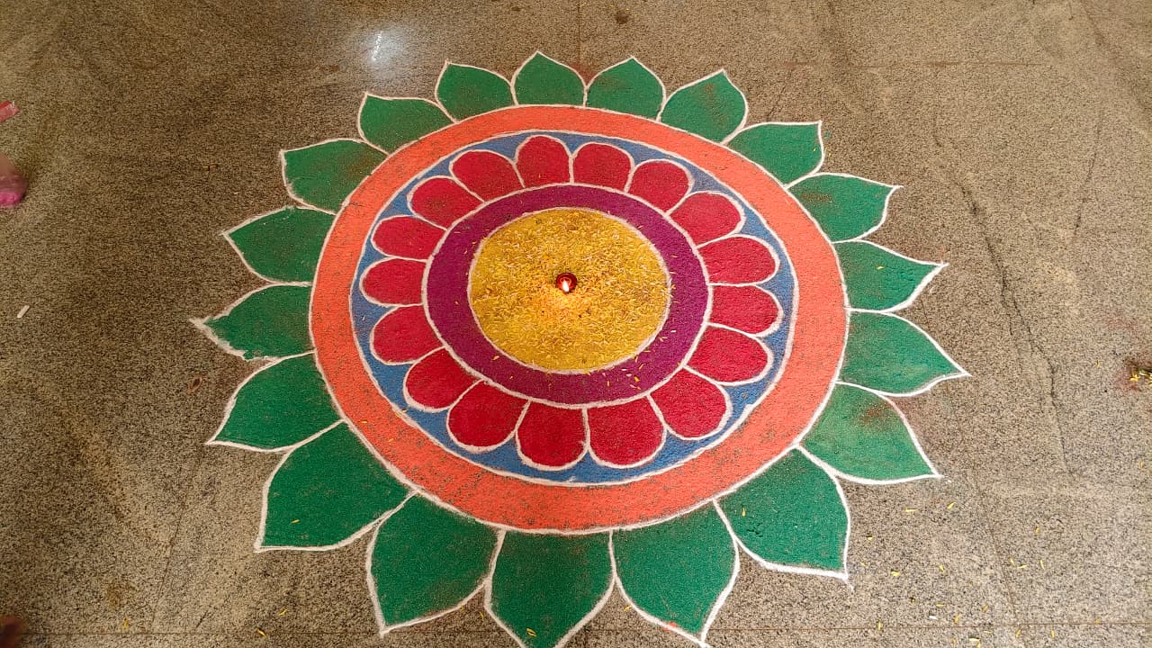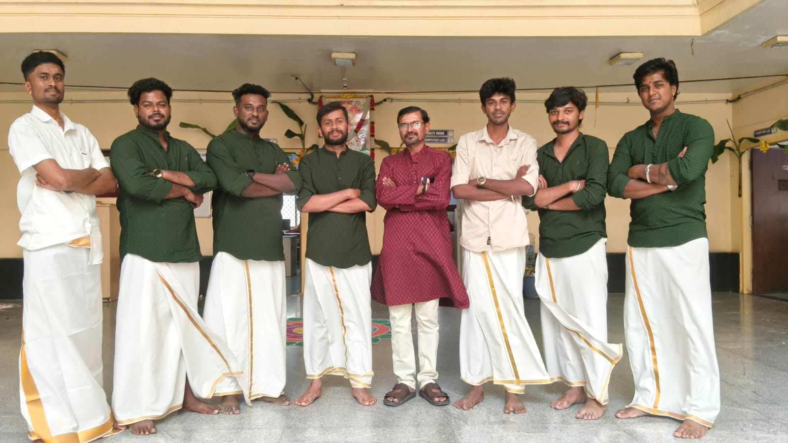 Faculty members, non-teaching staff, and students actively participated in decorating the campus with flowers, rangoli, and festive banners.