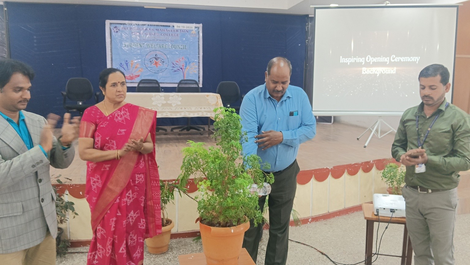 The event commenced with Ms. Hajira and Ms. Irfa as the Masters of Ceremony, followed by a warm Welcome Address by Ms. Harshitha. A symbolic act of watering a plant was performed by the guests to signify growth and sustainability, followed by a march by all SWC members, demonstrating unity and commitment. Dr.L Jayapandian IQAC Coordinator delivered an inspiring speech on student leadership, followed by speech from Dr. B K Manjula Head, Department of Kannada. The newly elected members were then formally badged, followed by the oath-taking ceremony led by the IQAC Coordinator, instilling a sense of duty among the inductees. Ms. Aatiya delivered the Vote of Thanks, acknowledging the contributions of all attendees and organizers.