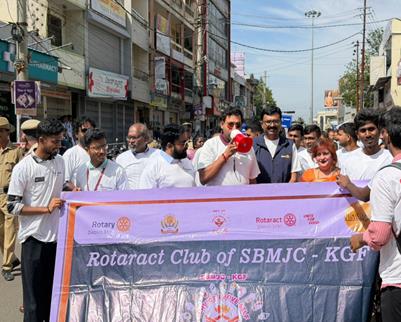 The Rotaract Club of SBMJC-KGF successfully organized a Walkathon in collaboration with Rotary KGF and Narayana Heart Centre, Jalappa, Kolar under the theme “Walk to Prevent a Sudden Heart Attack.”