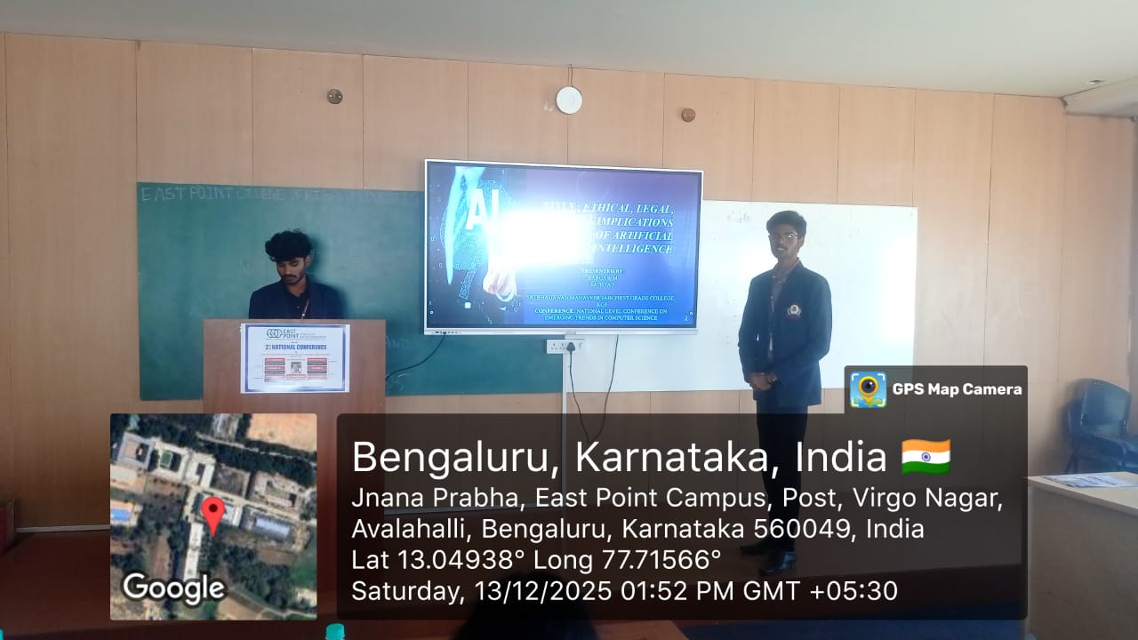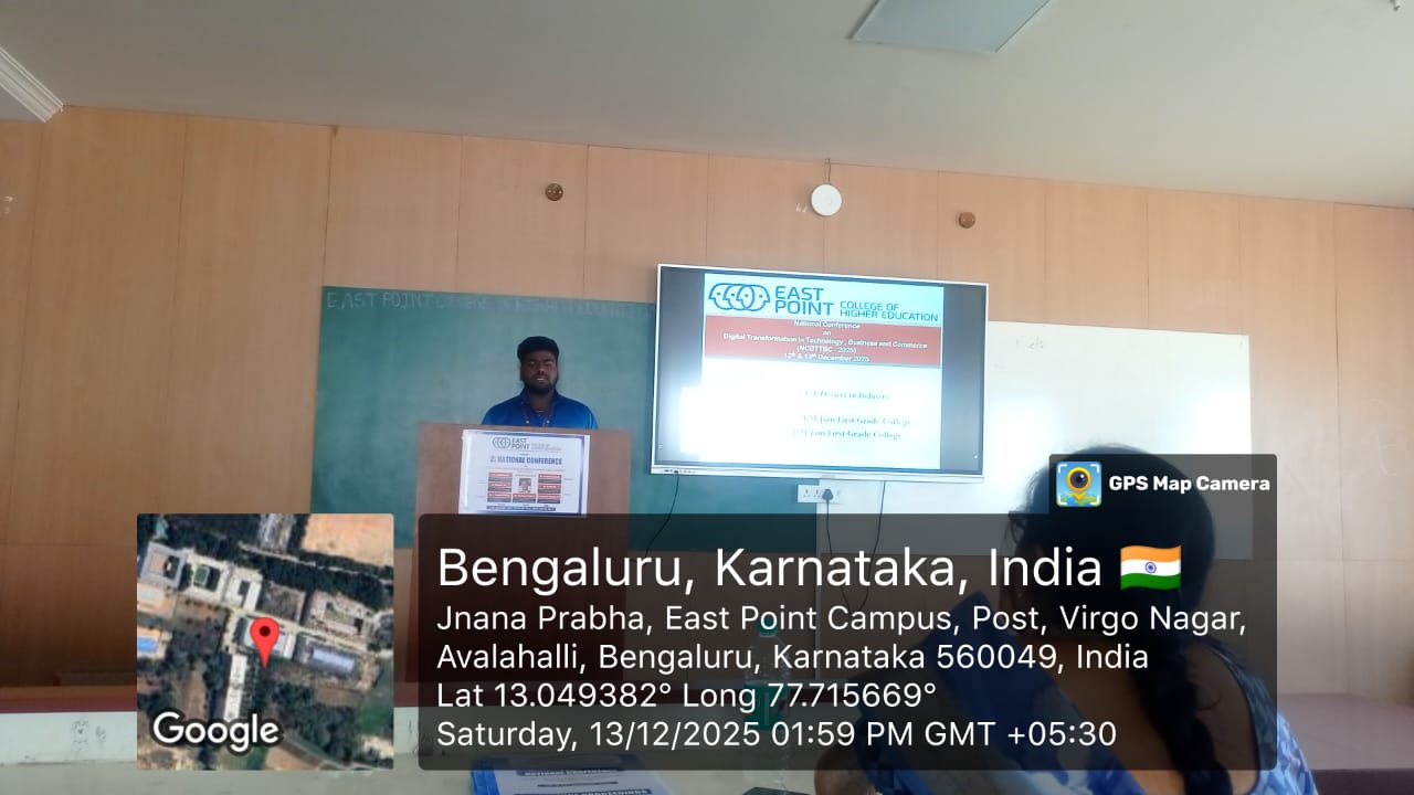 The Department of Computer Science faculties and students Presented and Published Paper in International Conference at EAST point college, Bengaluru Karnataka