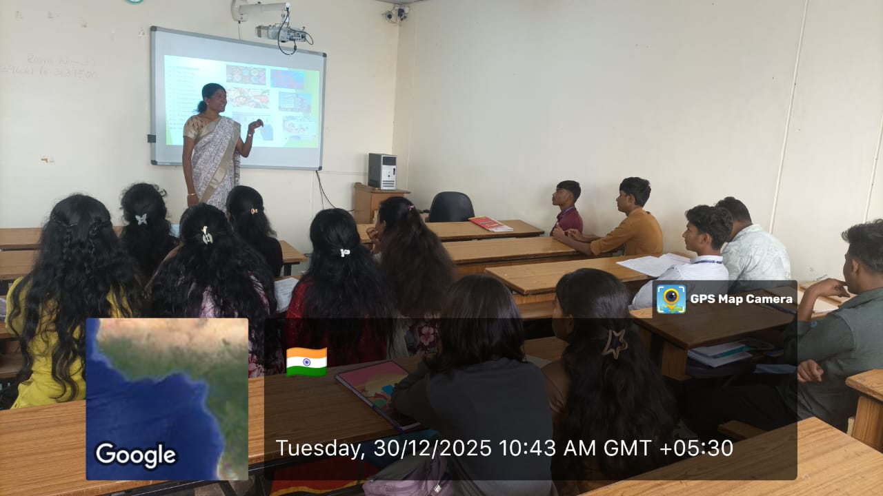 The resource person, CS Spoorthi Muralidhar, delivered an informative and engaging talk on the role of a Company Secretary in modern corporate governance. She highlighted the importance of the CS profession in ensuring legal compliance, corporate transparency, and ethical business practices. The speaker explained the structure of the CS course, levels of examination, eligibility criteria, training requirements, and the wide range of employment opportunities in corporate, legal, and consultancy sectors.