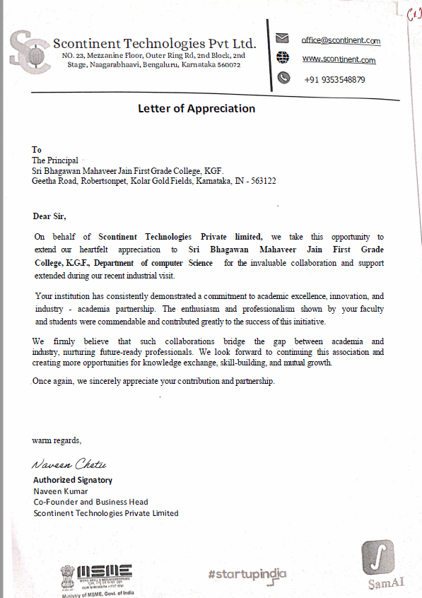 The Department of computer Science Organized Industrial Visit For BCA Students to Meru Info Solutions & Scontinent technologies Pvt Ltd,