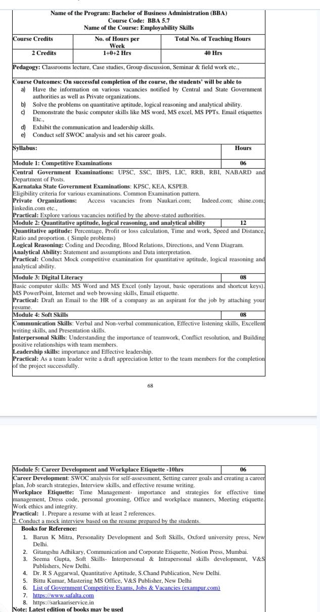 Date: 3rd -Nov -2025 Venue : Smart Room Subject : Employability skill Development Faculty Coordinators. Dr. Sujatha Arassu.