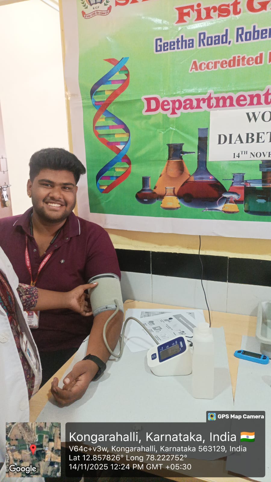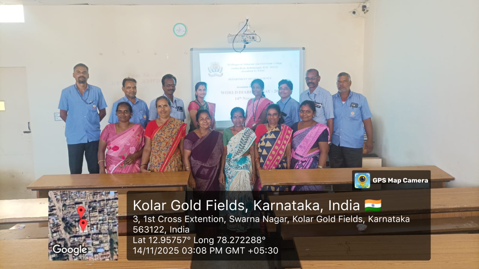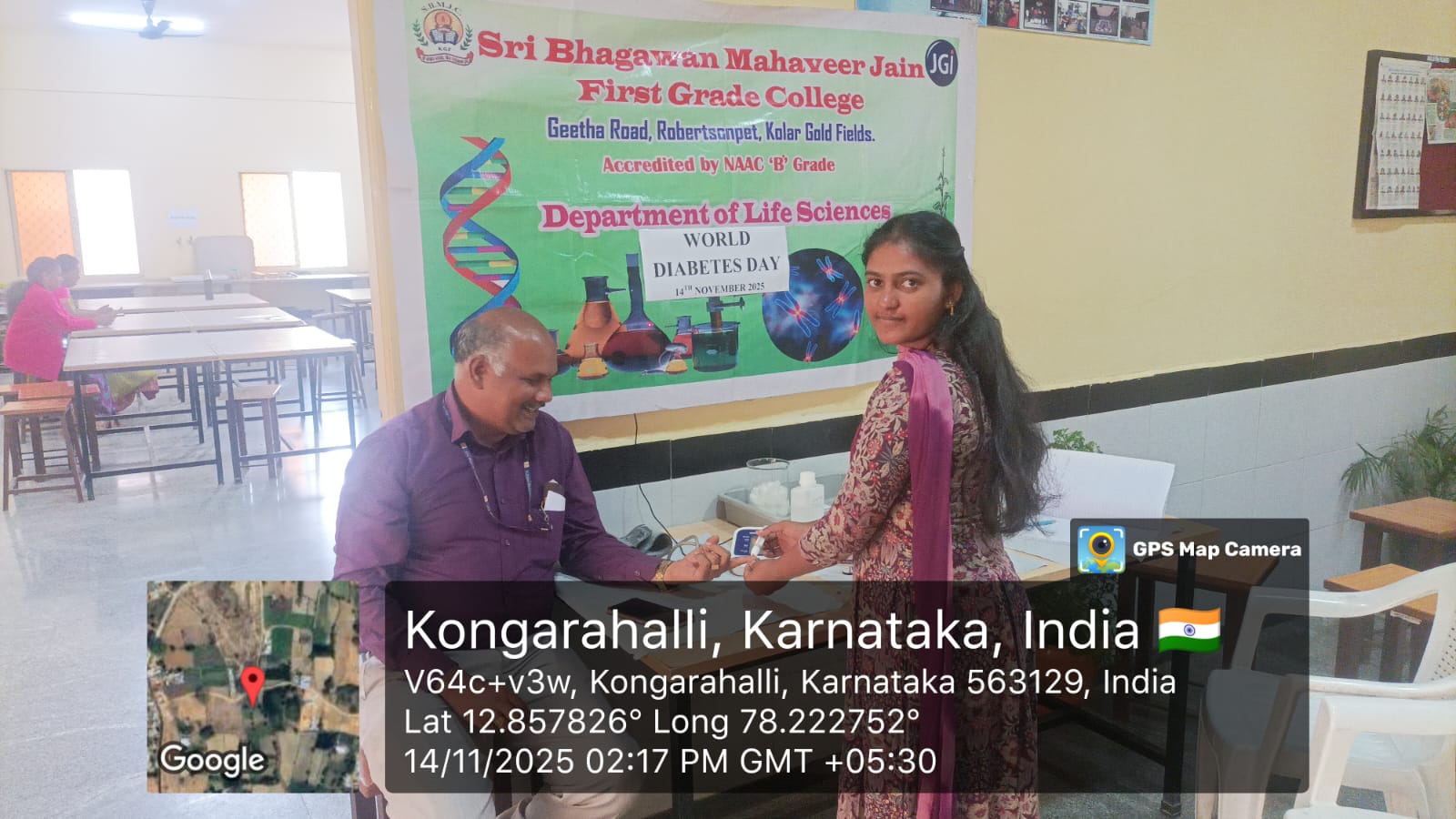 The Department of Life Science observed World Diabetes Day on 14th November 2025. Blood sugar level was checked for the teaching and non teaching staffs of SBMJFGC, KGF.