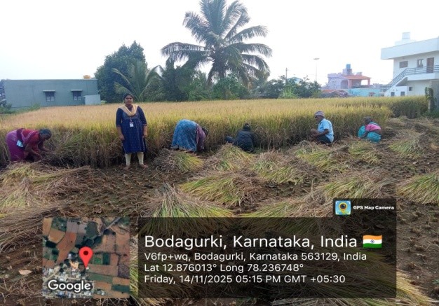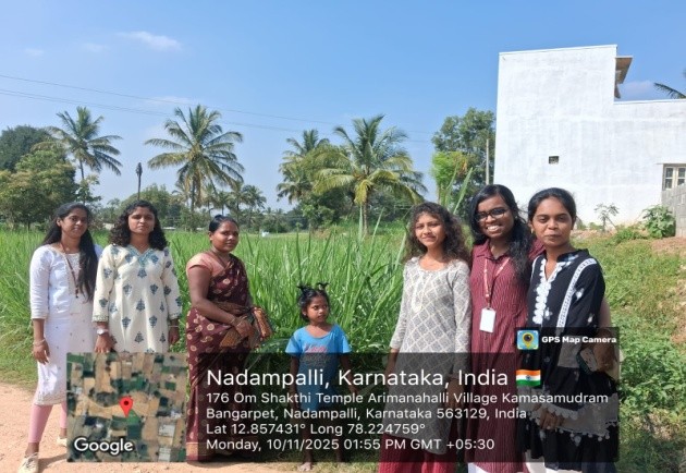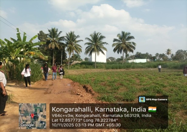 Eco club organized field visit at Bodenahalli from 10th November 2025 to 17th November 2025. 20 students and 2 faculty members actively participated to bring an awareness on chemical fertilizers, pollution , organic farming and drip irrigation for the farmers.