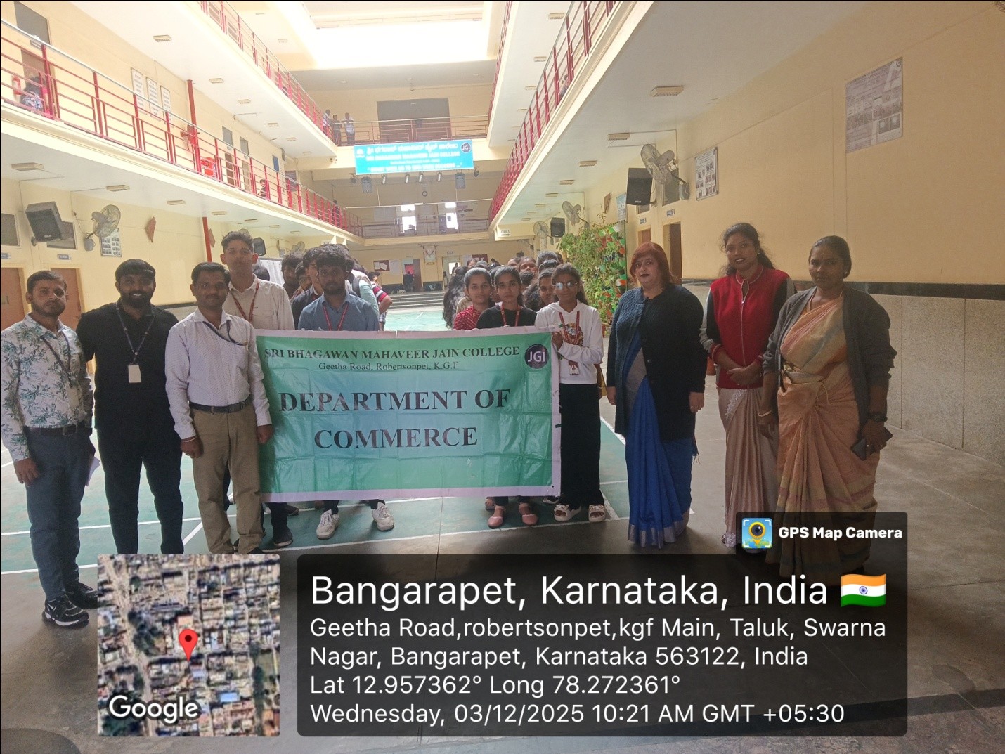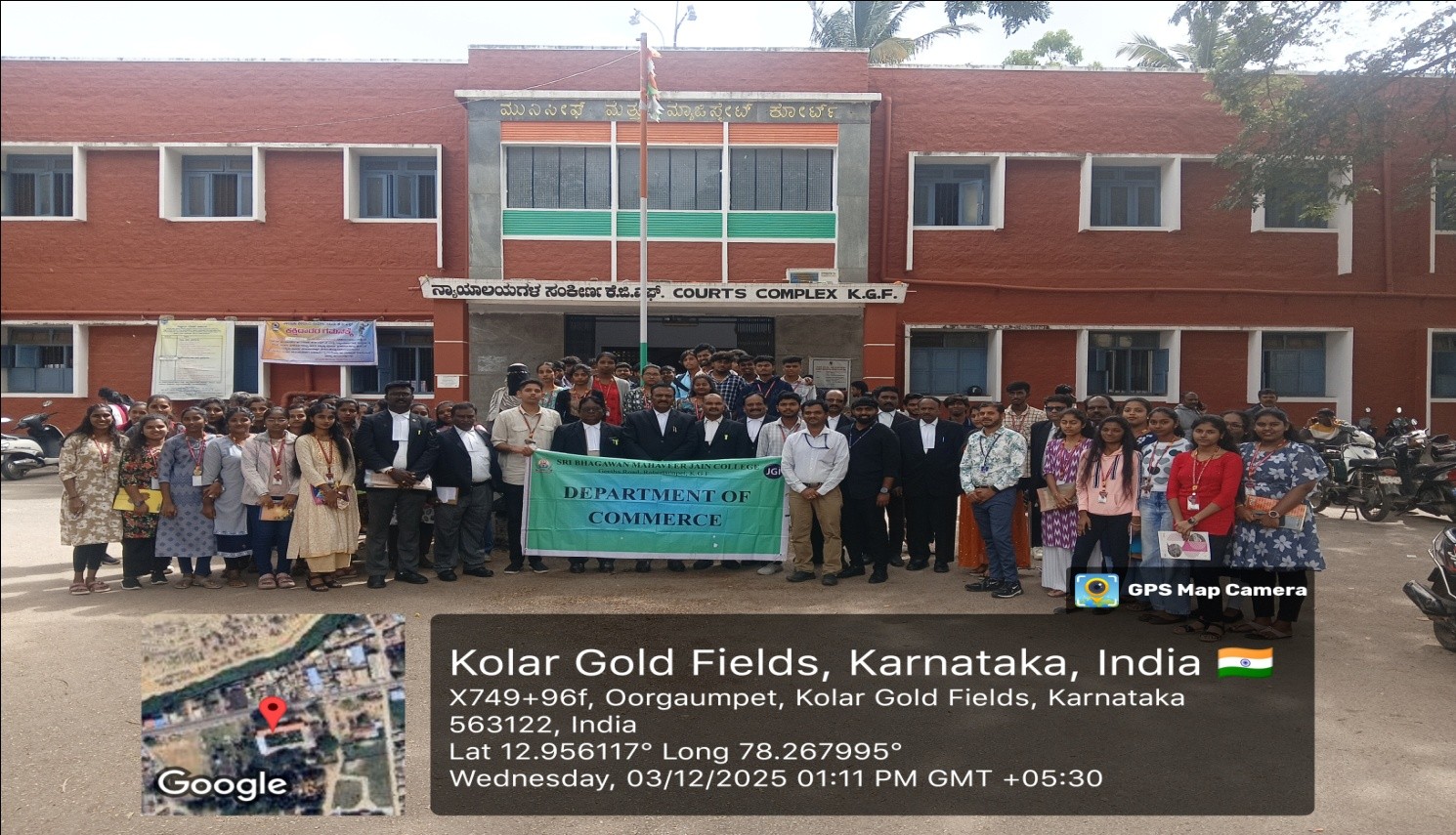 The Department of Commerce, Sri Bhagawan Mahaveer Jain First Grade College, Kolar Gold Fields (KGF), organized an educational court visit on 03rd December 2025 for the students of I Year B.Com. The visit aimed to provide practical exposure and insight into the functioning of the judicial system in India, as a part of the academic curriculum.