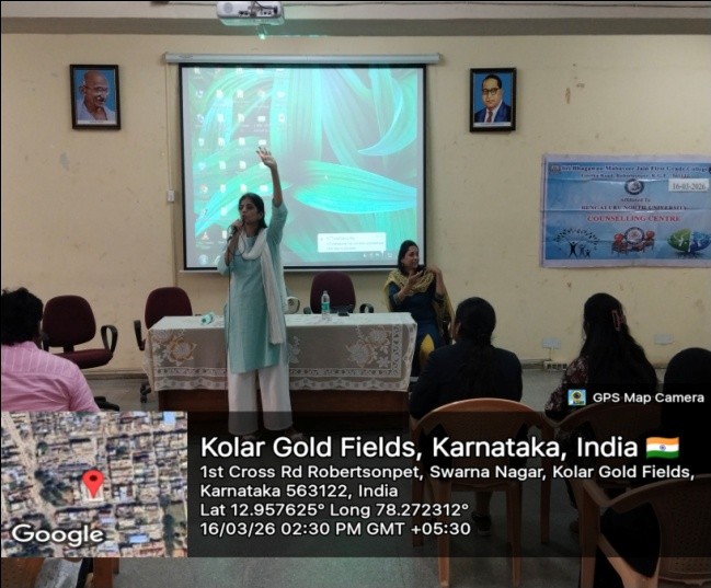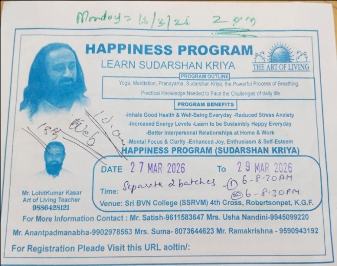 Counselling Centre in Association with IQAC organized workshop on the theme of “Happiness Program (Sudarshan Kriya)”, for all the First Year Degree Students on 16th March 2026 in the Auditorium.