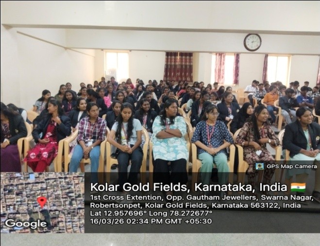Resource Person: Mrs. Suma Mrs. Sowmya Venkatesh and Mrs Usha Nandini delivered a wonderful message on “Happiness Program (Sudarshan Kriya)” , Dr. Rekha Sethi Principal, SBMJC, KGF, Dr. L. Jayapandian IQAC Co-Ordinator SBMJC, KGF, and Faculty Members were present.