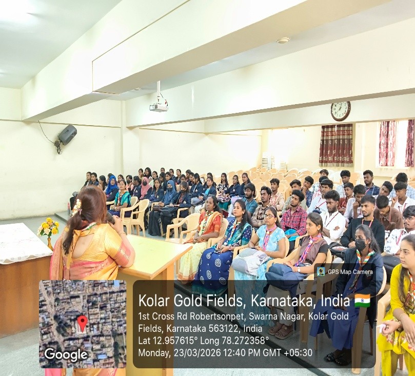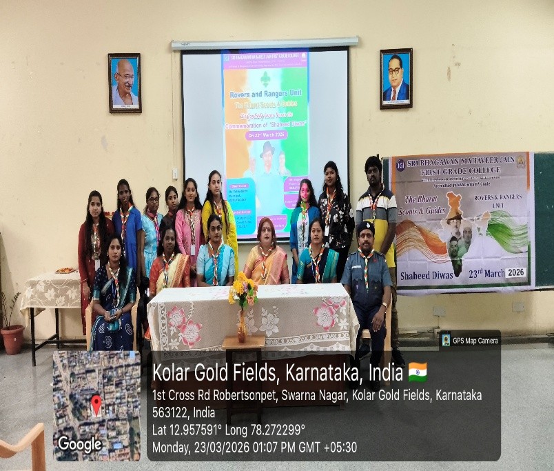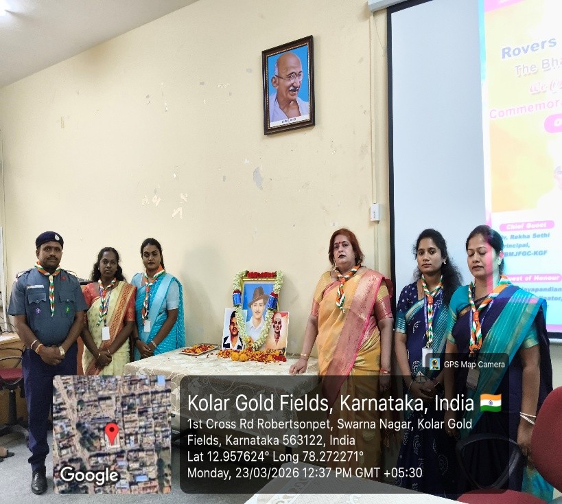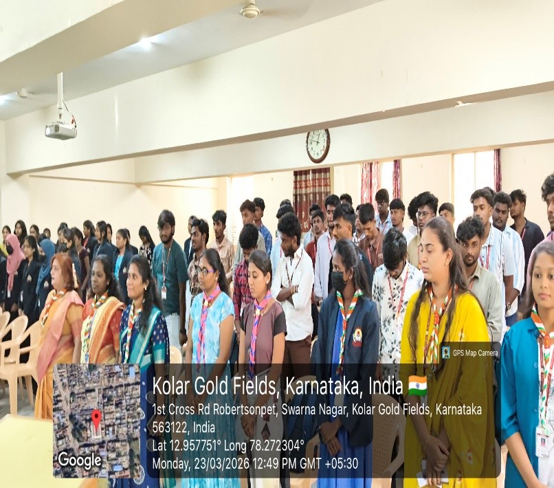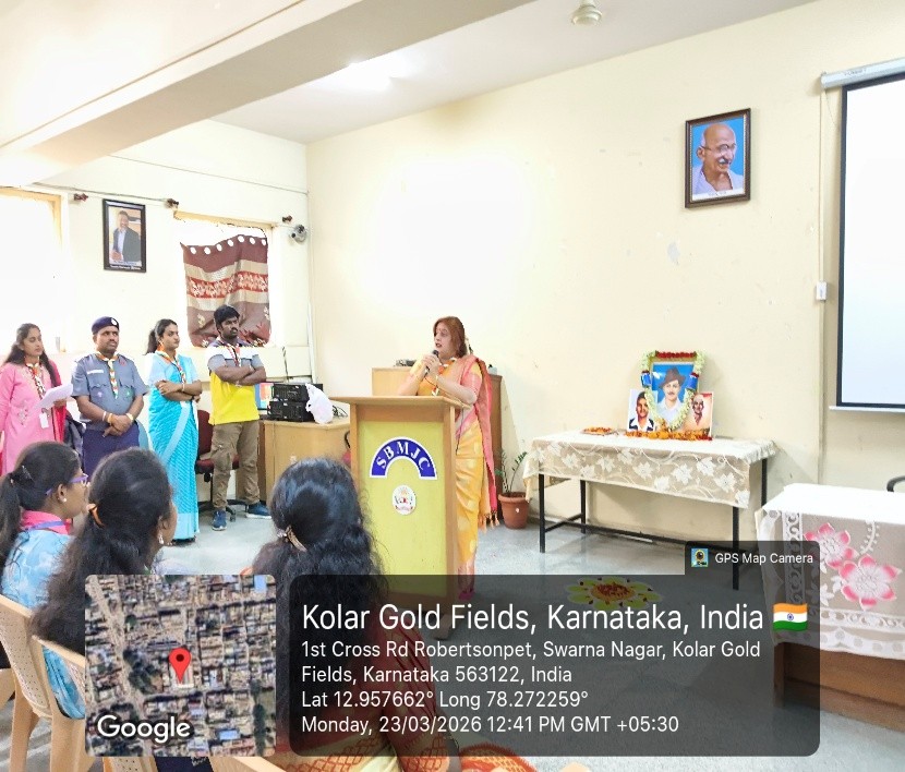 The Chief Guest Dr. Rekha Sethi, Principal, SBMJC, KGF. Emphasized the significance of Shaheed Diwas and recalled the sacrifices made by the freedom fighters and the privileges we enjoy in free India as a result of their struggle.