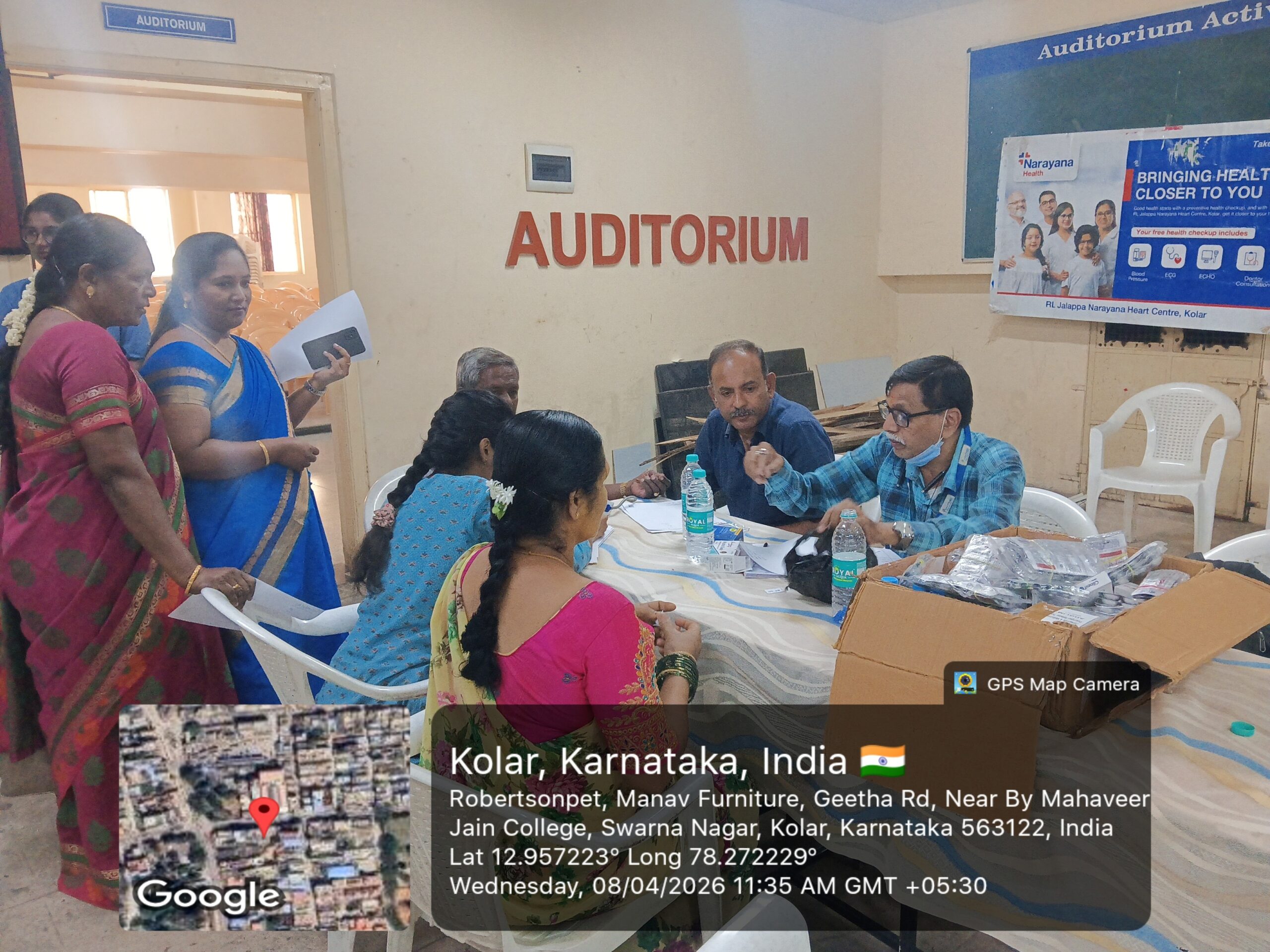 The Student Welfare Council (SWC) of SBMJFGC- KGF successfully organized a Health Check-up Camp in association with RL Jalappa Narayana Heart Centre, Kolar. The camp was conducted for the benefit of the teaching and non-teaching staff members along with their family members.