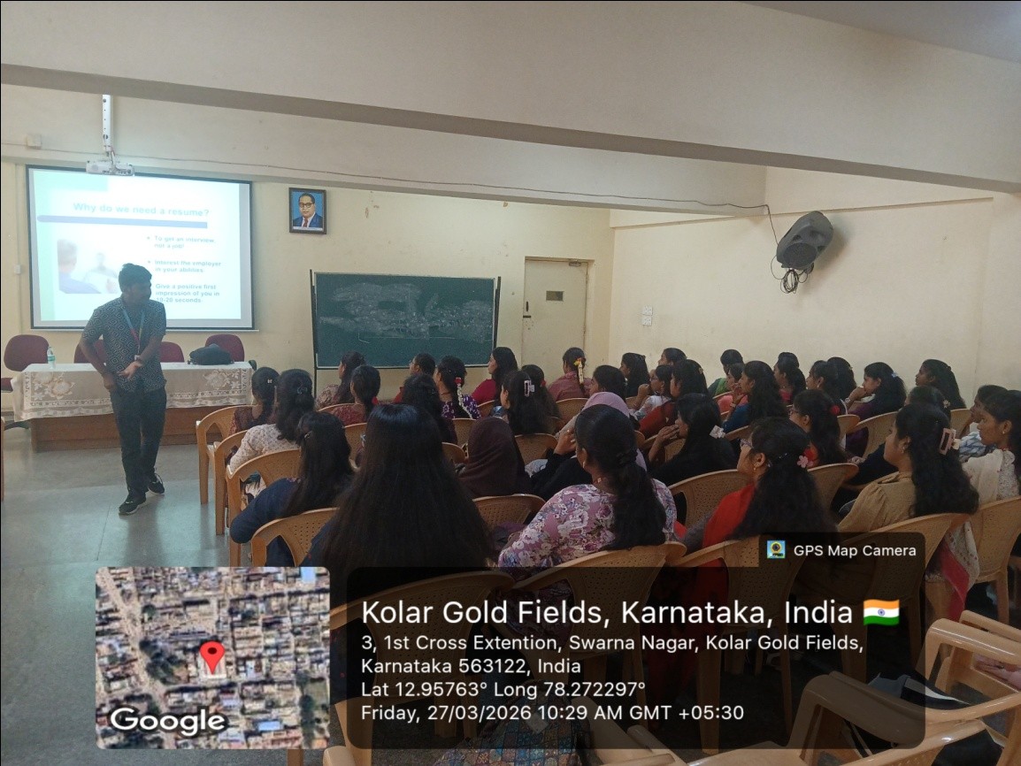 A Placement Training Program was successfully conducted at SBMJC, KGF, with the objective of preparing final-year students for employment opportunities. The session focused on enhancing students’ soft skills, self-awareness, and employability.